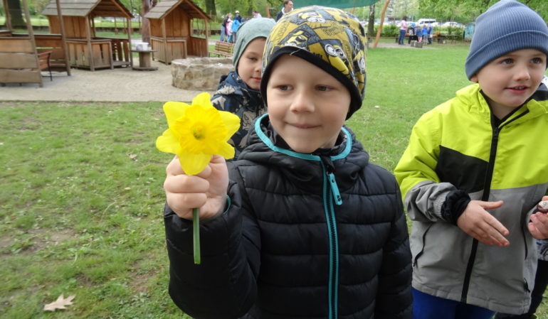 Naše zahrada se zaplnila malými ekology.Studenti ze sousedního gymnázia pro nás již potřetí připravili a také osobně zajistili pestrou a zajímavou akci na oslavu Dne Země. Jejich nápaditá stanoviště obsáhla témata se zvířaty, hmyzem, rostlinami, stromy, nakládání s odpady, a nezapomněli ani na digitální technologie a nezbytný pohyb. Tato ekologická skládanka na deseti rozmanitých stanovištích zaměstnala děti na celé dopoledne.  I když chladné a mokré ráno vypadalo dost beznadějně, teple oblečené děti přírodní program na zahradě hravě zvládly a dobře se bavily. I slunce na nás občas vykouklo. Možná to Země tak chtěla, aby o svoji krásnou oslavu nepřišla….
