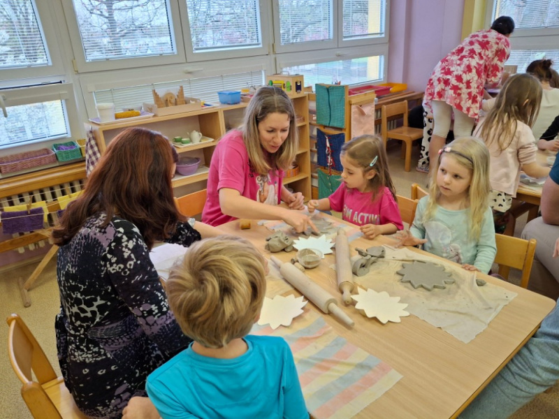Na tuto cestu jsme pozvali i rodiče, kteří si s dětmi přišli vytvořit keramickou duhu a pamětní list do dětského portfolia. Obojí se krásně povedlo a zůstane milou vzpomínkou na společné odpoledne plné barev, tvoření a radosti.
