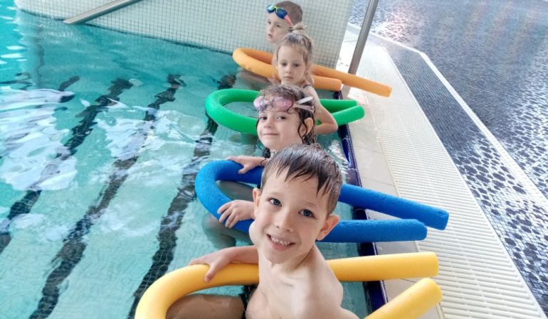 Letní kurz plavání je v plném proudu.Do pardubického plaveckého areálu jezdí kolem 60 dětí z naší školky.  Většina z nich je ve vodě jako doma, mnohé už plavou beze všech pomůcek, a to i v hlubokém bazénu. Instruktoři dobře vědí, kde jsou hranice a limity každého dítěte a podle toho volí více či méně náročné hry a cvičení ve vodě. Děti se na plavání těší a my dospělí víme, že jsou zase o krůček blíže k nové pohybové dovednosti a vlastnímu bezpečí při pobytu u vody.  A to je moc fajn.
