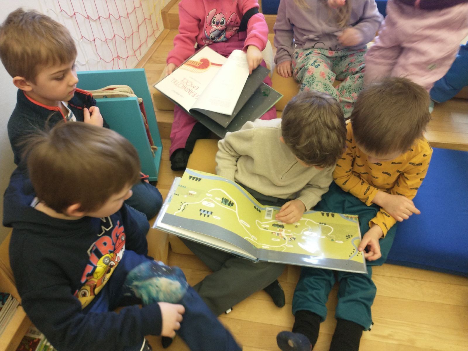 Děti také hrají pohádky pro rodiče, přinášejí své oblíbené knihy do školky a společně si je prohlížíme, vyprávíme si o nich a čteme.