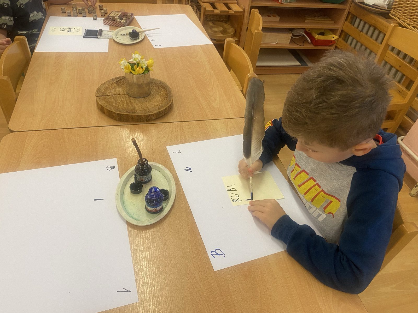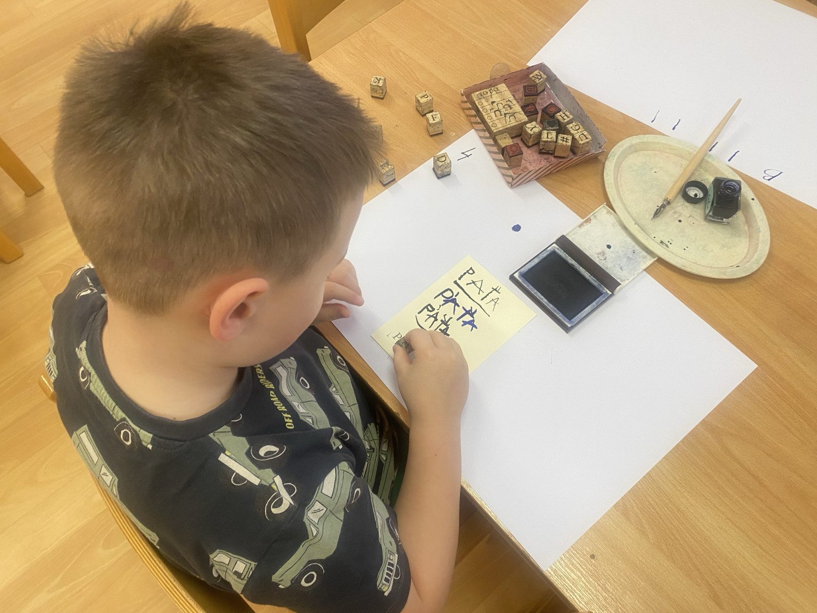 Děti se hravou formou seznamují s počátky psaní – zkoušejí psát husím brkem a inkoustem, objevují, jak se kdysi skládal tisk písmenko po písmenku, a poznávají i mechanický psací stroj. V některých třídách děti vymýšlejí vlastní příběhy, kreslí ilustrace a společně vytvářejí autorskou třídní knihu.