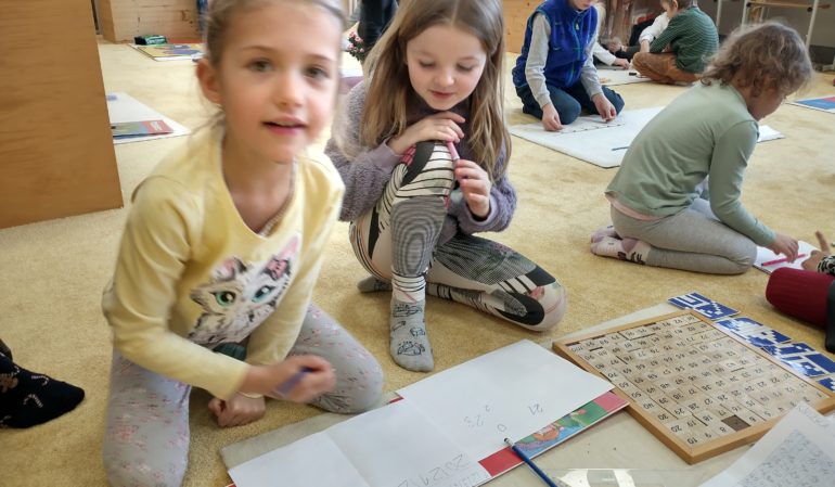 Budoucí prvňáčci navštívili Montessori školu.Ve škole je laskavě přivítala paní učitelka Radka a provedla je celou krásnou budovou školy. Děti pozorně poslouchaly, ale nejvíce se těšily na své kamarády do prvního trojročí. Setkaly se s nimi vzápětí a vzájemné vítání bylo radostné. Na koberečcích byly připravené aktivity a naše děti se bez zaváhání zapojily do práce. Starší kamarádi jim trpělivě pomáhali a ve třídě panovala klidná a pohodová nálada. Bylo zřejmé, že děti jsou si zvyklé navzájem pomáhat. Paní učitelka konstatovala, že by je všechny s radostí v září přivítala ve své třídě.