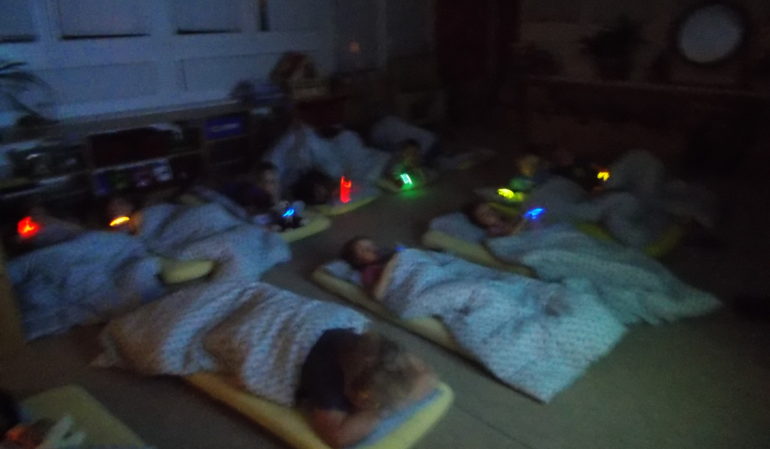 Jednou za rok jsou ve školce děti i v noci.A to tehdy, když se budoucí prvňáčci loučí se školkou a chtějí si užít poslední společné dobrodružství. Tak to bylo i v noci z pátka na sobotu. Na děti čekala podvečerní hostina se zmrzlinou, nealko přípitkem a bohatou večeří, velké pátrání podle tajné mapy pokladů s mnoha úkoly, i dětská diskotéka. Večerní cesta setmělou školkou pak navodila tu správnou atmosféru pro pohádku a usínání se světýlky kouzelných náramků. Ráno byl čas na snídani podle přání – nabízely se jahodové řezy, tvarohový cheesecake, moravské koláče, ovoce, mléko džus… To vše jim připravily starostlivé maminky. Po snídani se děti zase vrátily do svých domovů.