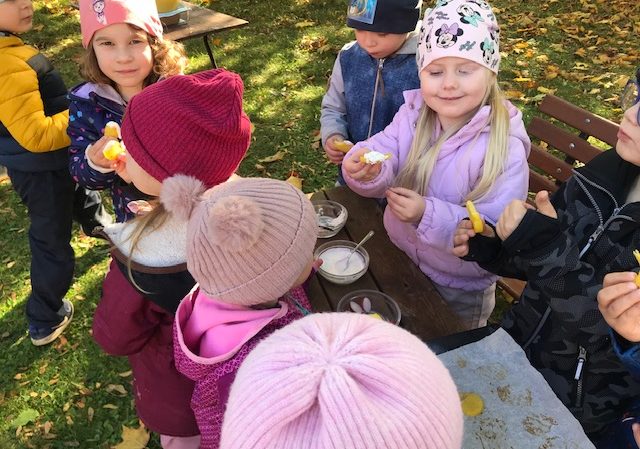 Naše zahrada nabízí plno dobrodružství.Děti u nás zažívají spoustu nevšedních a zábavných aktivit na čerstvém vzduchu. Jedním z oblíbených zážitků je pečení v naší zahradní pícce a opékání u ohniště. V teplých podzimních dnech jsme tyto možnosti plně využili. Děti si samy připravily a také vychutnaly opečené buřtíky i voňavé brambory pečené přímo v peci. Vše zmizelo do posledního kousku! Živý oheň děti vždy fascinuje a jsme rádi, že jim můžeme kdykoli nabídnout zážitkové dopoledne plné radosti a nových dovedností.