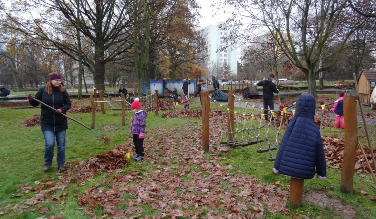 Hrabání listí na naší zahradě jsme společnými silami zase zvládli.Poslední listopadová sobota byla zamračená a ve vzduchu visely dešťové kapky. Na ohlášenou brigádu však dorazilo tolik rodičů s dětmi, že nebylo pochyb o jejím úspěchu. Naše zahrada je nádherná, plná ohromných listnatých stromů. V létě nám poskytuje tolik potřebný chládek a stín. A ty barvy, kterými v říjnu zazáří do oken všech tříd! Kolik radovánek pak barevné listí poskytne dětem, na hry i na zábavné tvoření. No a pak nastane ten čas, kdy spadané listí musí ze zahrady pryč. A tady už legrace končí, protože je ho veliká hromada a zasype celou plochu. Bez pomoci rodičů bychom to takhle rychle uklidit nezvládli, s jejich pomocí to šlo raz dva. Nakonec si tu nevlídnou sobotu užili všichni, rodiče i děti. Teď jen smýt ze sebe to bláto a odpočinout si po pořádné a záslužné práci!