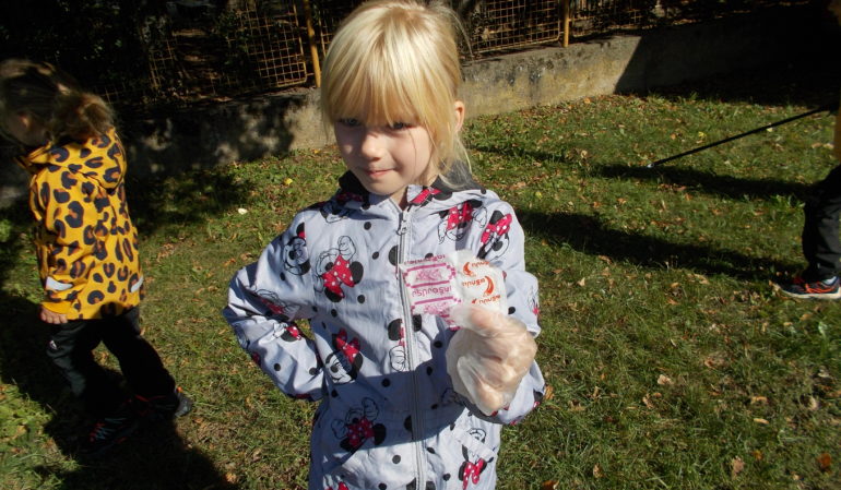 Človíček se narodil mamince Zemi a tatínkovi Slunci. Stane se součástí třídy a bude děti provázet mnoha aktivitami, vedoucími k rozvíjení a upevňování vztahů k sobě samým, k přírodě, k ostatním lidem i celé planetě. Hned na začátku se děti rozhlédly po okolí a viděly, co se jim nelíbí a co tam určitě nepatří. Neváhaly, vzaly potřebné náčiní a uklízely kolem školky.  Odpadků, patřících do košů, sesbíraly dost. Trošku pomohly mamince Zemi a trošku se poučily. Tyto děti asi odpadky na zem házet nebudou, co myslíte?