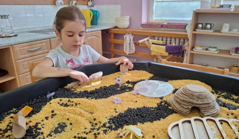 Děti během smyslohraní pracují s různorodými materiály – například s rýží, cizrnou, pískem, vodou nebo modelínou. Tyto činnosti podporují jemnou motoriku, koncentraci, zrakové i hmatové vnímání, a zároveň rozvíjejí fantazii a tvořivost. Pro mnohé děti představují i příležitost ke zklidnění a relaxaci.