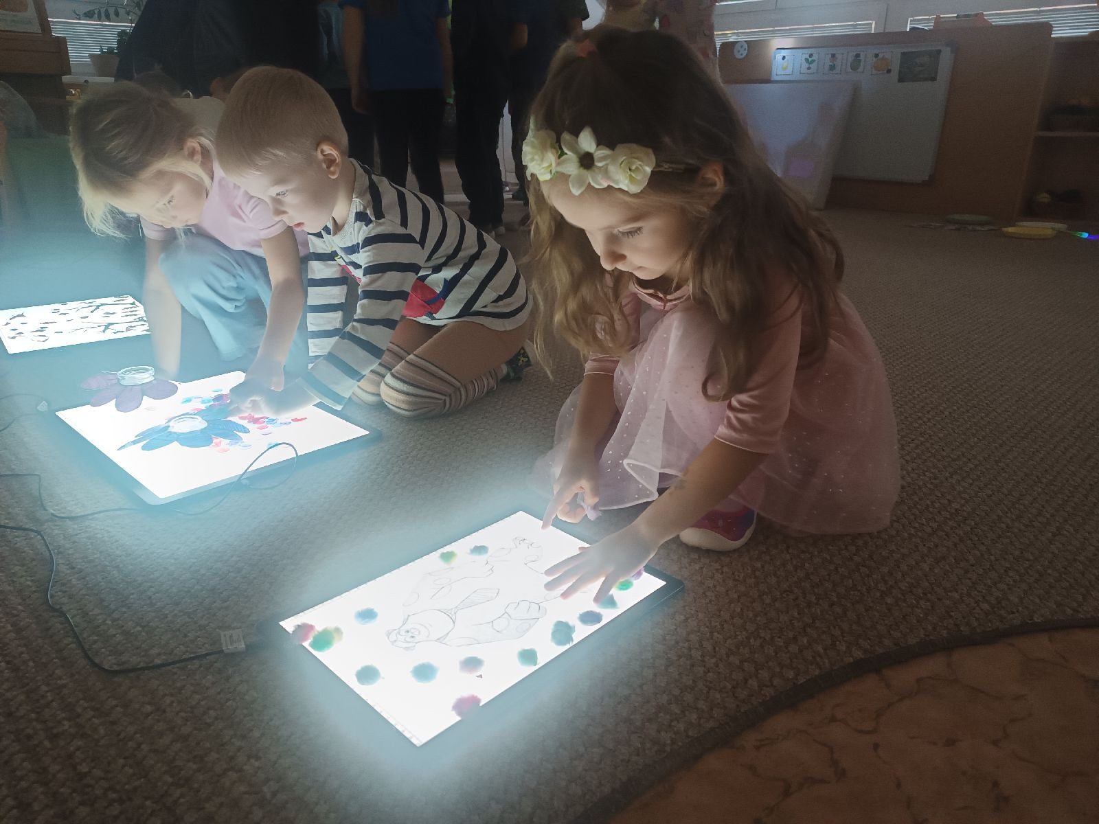 Naše lektorka vytvořila dětem kouzelný prostor plný světelných efektů, ve kterém si každý našel svůj koutek radosti a zvědavosti. Stínohrátky rozzářily jinak podmračený podzimní den – doslova i obrazně.
