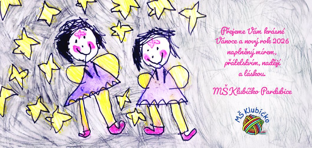 Klubíčko přeje krásné Vánoce!Všem dětem, jejich rodinám i našim příznivcům přejeme krásné Vánoce a do nového roku pevné zdraví, mír a bezpečí, přátelství a lásku. To nám pak pomůže lépe zvládnout všechny starosti, které mohou přijít. A doufejme, že radostných chvil bude více, než těch opačných.